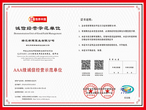 當前位置:首頁>>榮譽資質>>誠信經營示范單位